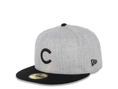 Chicago Cubs New Era MLB 59FIFTY 5950 Fitted Cap Hat Heather Gray Crown Black Visor Black Logo