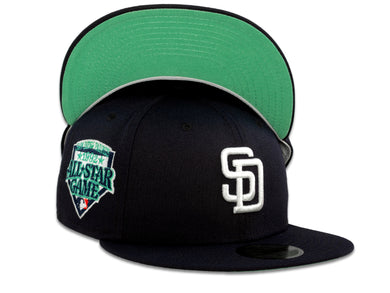 San Diego Padres New Era MLB 59Fifty 5950 Fitted Cap Hat Navy Crown White Logo 1992 All-Star Game Side Patch Mint UV
