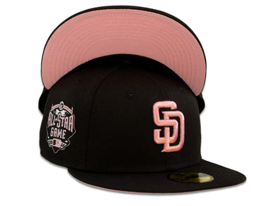 San Diego Padres New Era MLB 59Fifty 5950 Fitted Cap Hat Black Crown Pink Logo 2016 All-Star Game Side Patch Pink UV