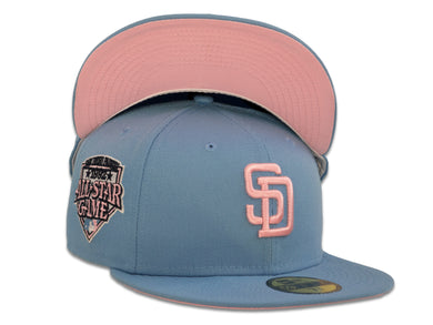 San Diego Padres New Era MLB 59Fifty 5950 Fitted Cap Hat Sky Blue Crown Pink Logo 1992 All-Star Game Side Patch Pink UV