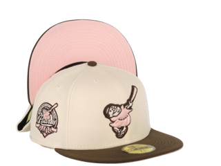 San Diego Padres New Era MLB 59FIFTY 5950 Fitted Cap Hat Cream Crown Light Brown Visor Brown/Pink Catching Friar Logo 40th Anniversary Side Patch