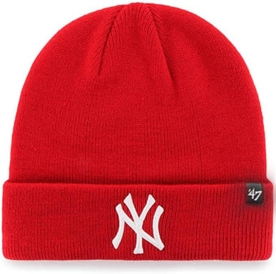 New York Yankees '47 Brand MLB Cuffed Knit Beanie Hat Red Crown/Visor White Logo
