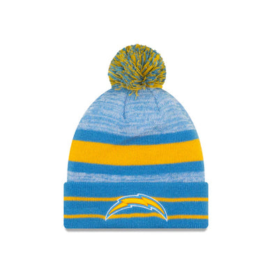 Los Angeles Chargers New Era NFL Cuffed Pom Knit Hat Sky Blue/Yellow Crown Team Color Logo