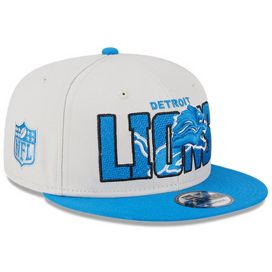 Detroit Lions New Era NFL 9FIFTY 950 Snapback Cap Hat Stone Crown Royal Blue Visor Team Color Logo (2023 Draft On Stage)
