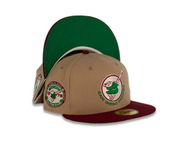 San Diego Padres New Era MLB 59FIFTY 5950 Fitted Cap Hat Khaki Crown Cardinal Visor Green/Ivory Swinging Friar Logo 1978 All-Star Game Side Patch