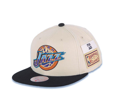 Utah Jazz Mitchell & Ness NBA Snapback Hardwood Classics Cap Hat Cream Crown Black Visor Team Color Logo