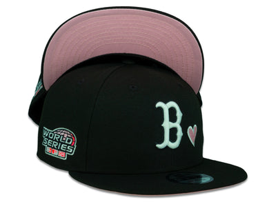 Boston Red Sox New Era MLB 9Fifty 950 Snapback Cap Hat Black Crown White Logo with Heart 2004 World Series Side Patch Pink UV