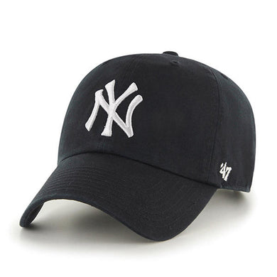 New York Yankees '47 Brand MLB Clean Up Adjustable Cap Hat Black Crown/Visor White Logo