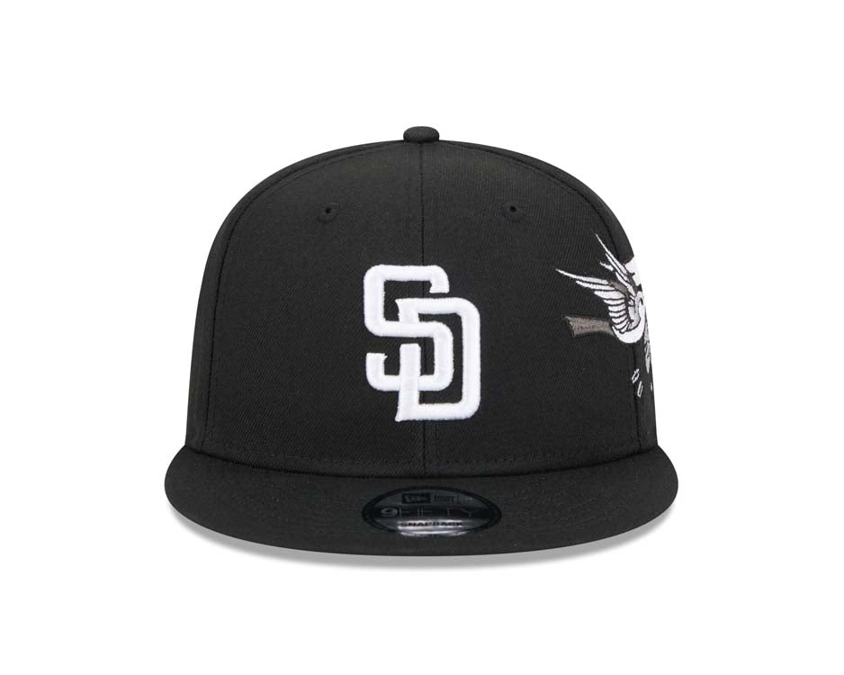 San Diego Padres New Era MLB 9FIFTY 950 Snapback Cap Hat Black Crown/Visor White Logo (City Art)