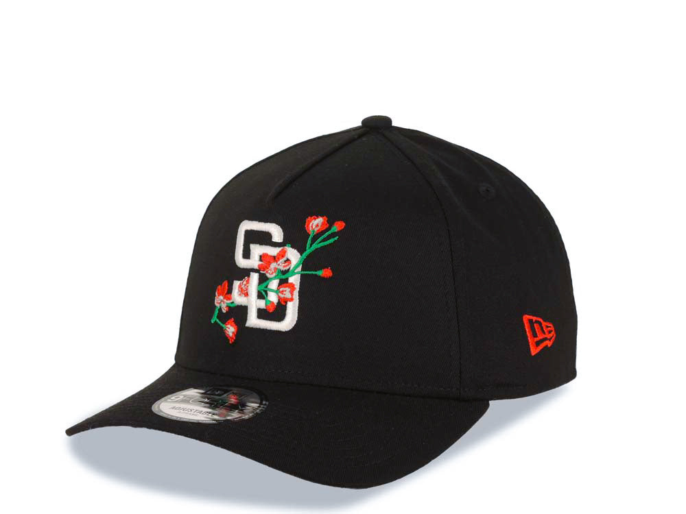 San Diego Padres New Era MLB 9FORTY 940 Adjustable A-Frame Cap Hat Black Crown/Visor White/Red With Rose Logo 40th Anniversary Side Patch Gray UV