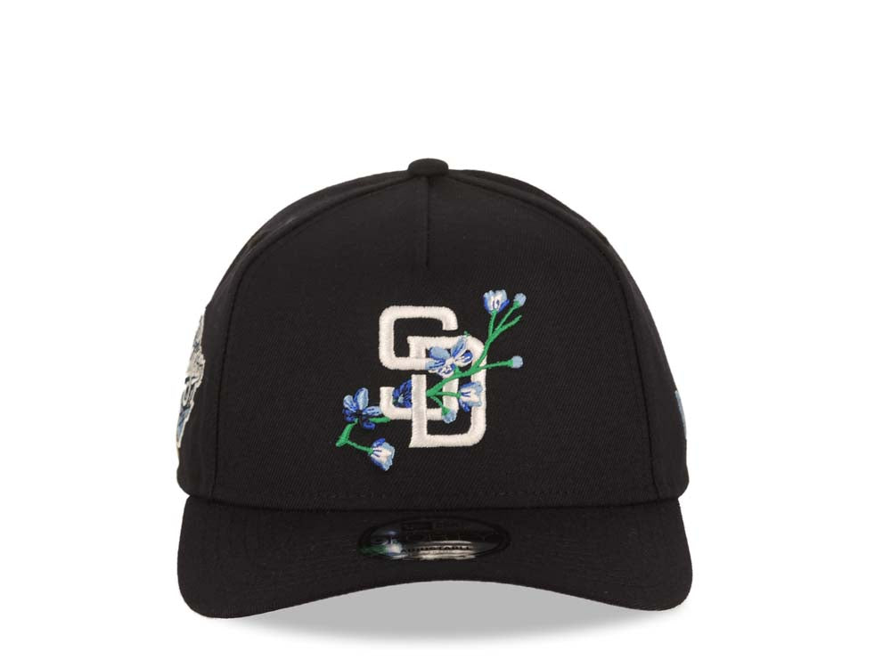 San Diego Padres New Era MLB 9FORTY 940 Adjustable A-Frame Cap Hat Navy Blue Crown/Visor White/Sky Blue With Rose Logo 1998 World Series Side Patch Gray UV