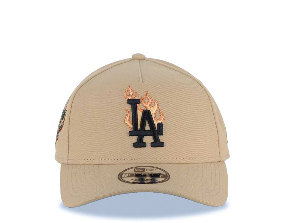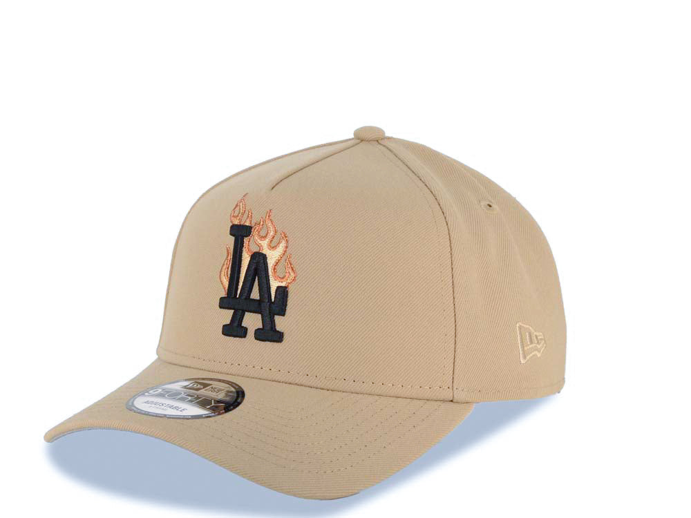 Los Angeles Dodgers New Era MLB 9FORTY 940 AdjustableA-Frame Cap Hat Khaki Crown/Visor Black With Metallic Orange Fire Logo Stadium Side Patch Gray UV