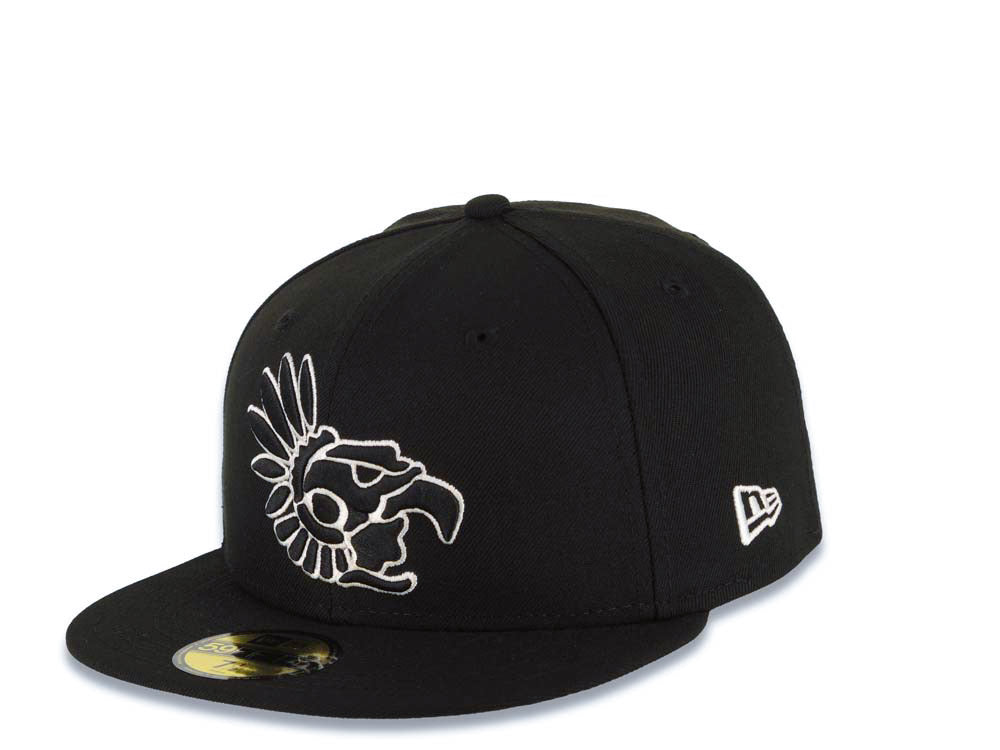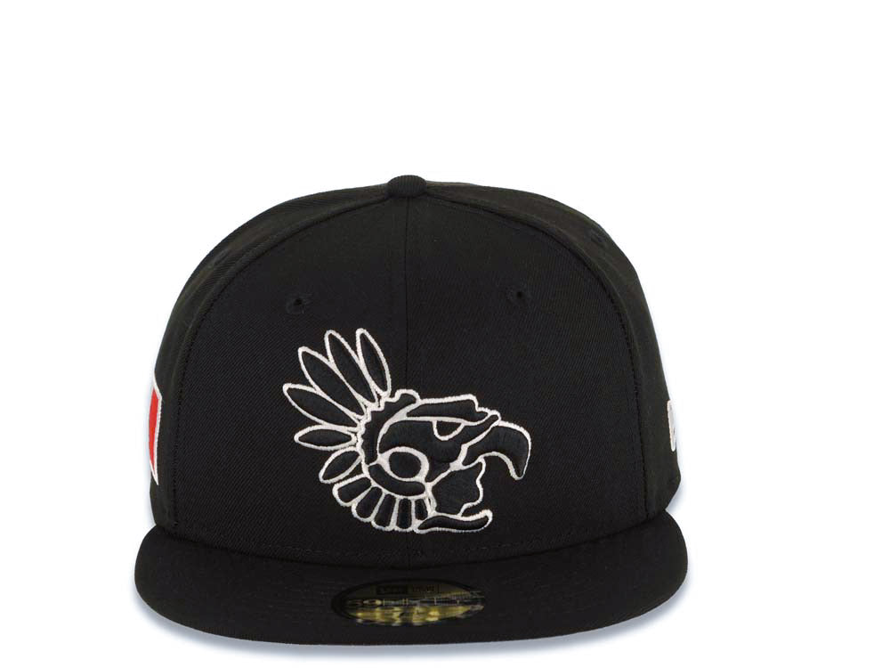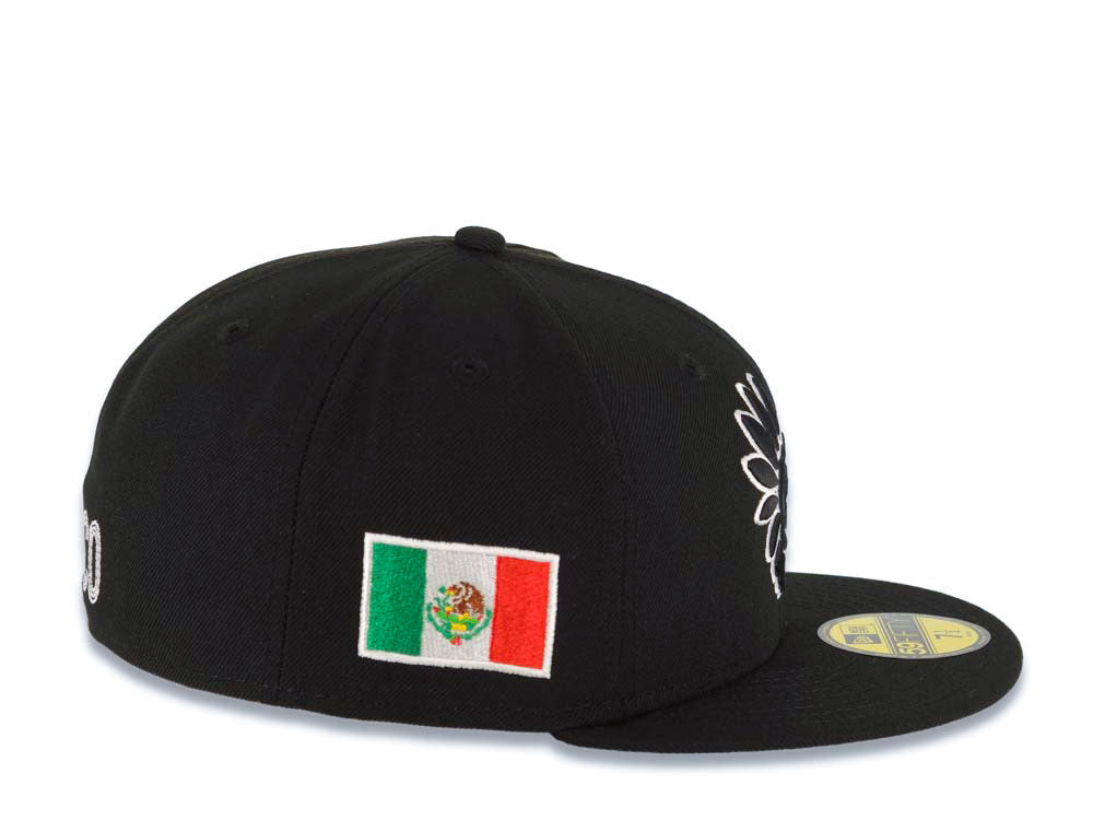 Mexico Aztec New Era WBC 59FIFTY 5950 Fitted Cap Hat Black Crown/Visor White Logo Mexico Flag Side Patch Gray UV