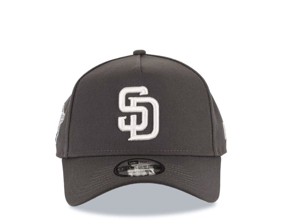 San Diego Padres New Era MLB 9FORTY 940 Adjustable A-Frame Cap Hat Gray Crown/Visor White Logo 1998 World Series Side Patch Gray UV