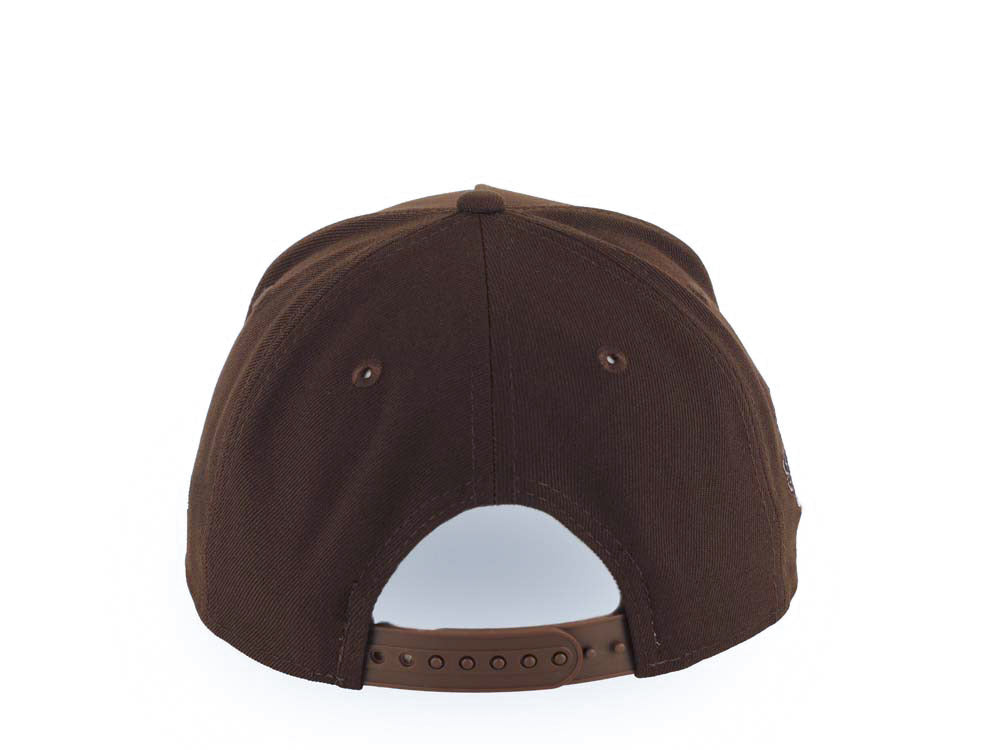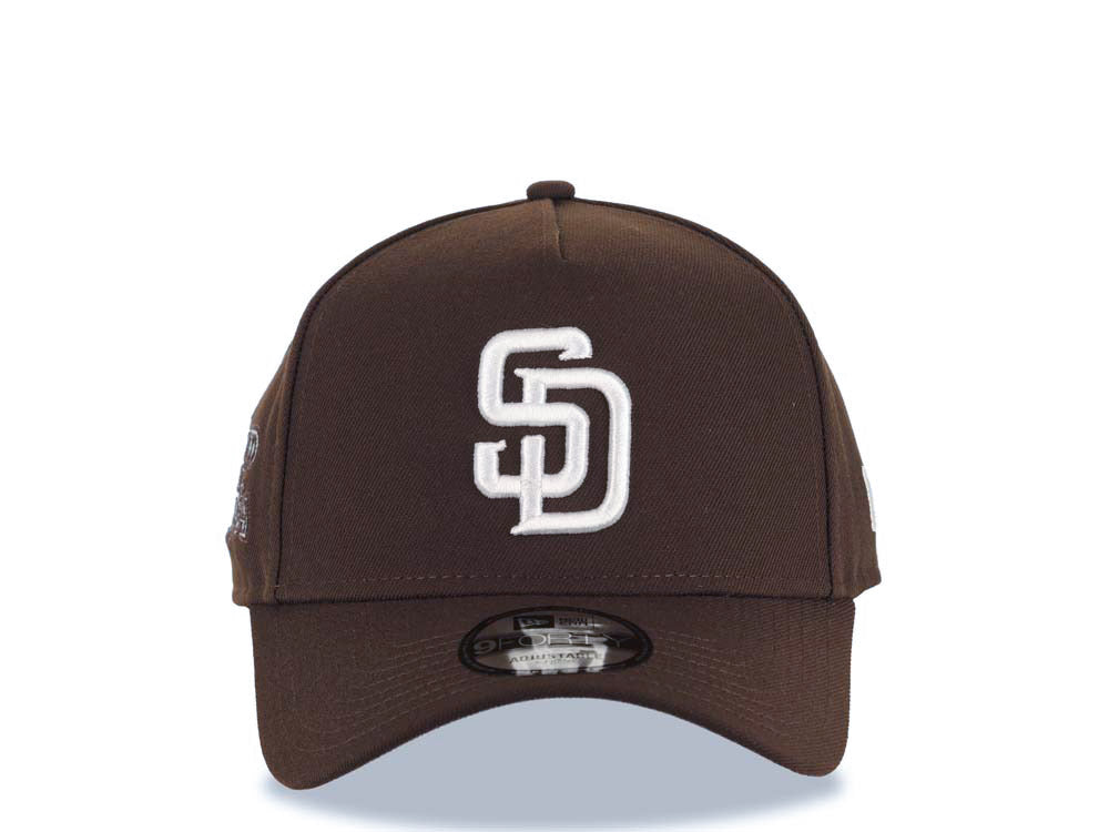 San Diego Padres New Era MLB 9FORTY 940 Adjustable A-Frame Cap Hat Brown Crown/Visor White Logo 1984 World Series Side Patch Gray UV