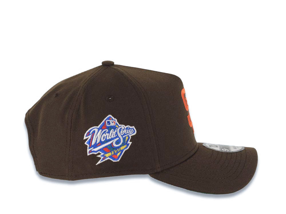 San Diego Padres New Era MLB 9FORTY 940 Adjustable A-Frame Cap Hat Brown Crown/Visor Orange Logo 1998 World Series Side Patch Green UV