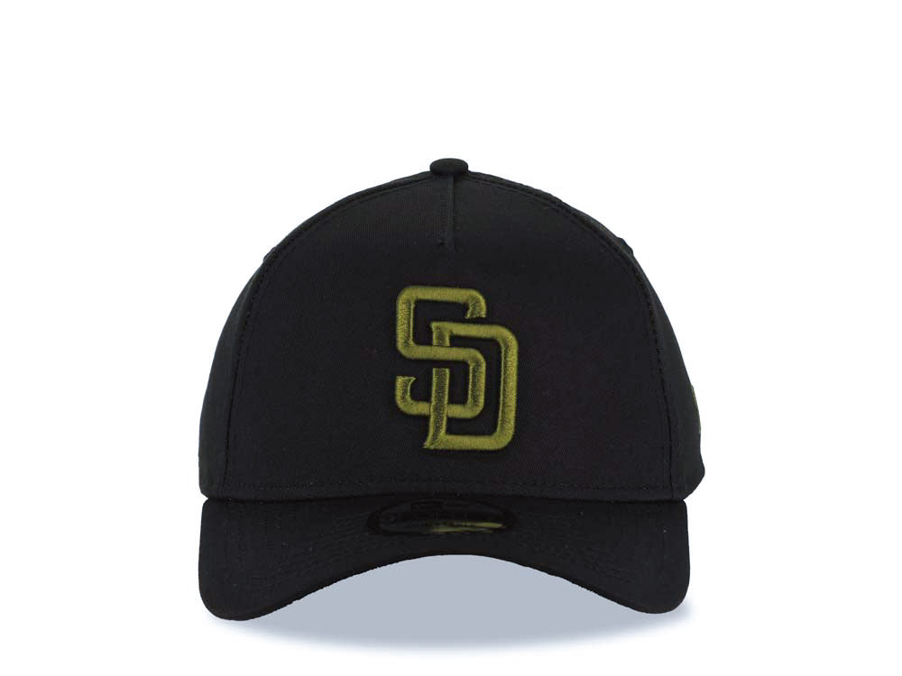 San Diego Padres New Era MLB 9FORTY 940 Adjustable A-Frame Cap Hat Black Crown/Visor Dark Green Logo