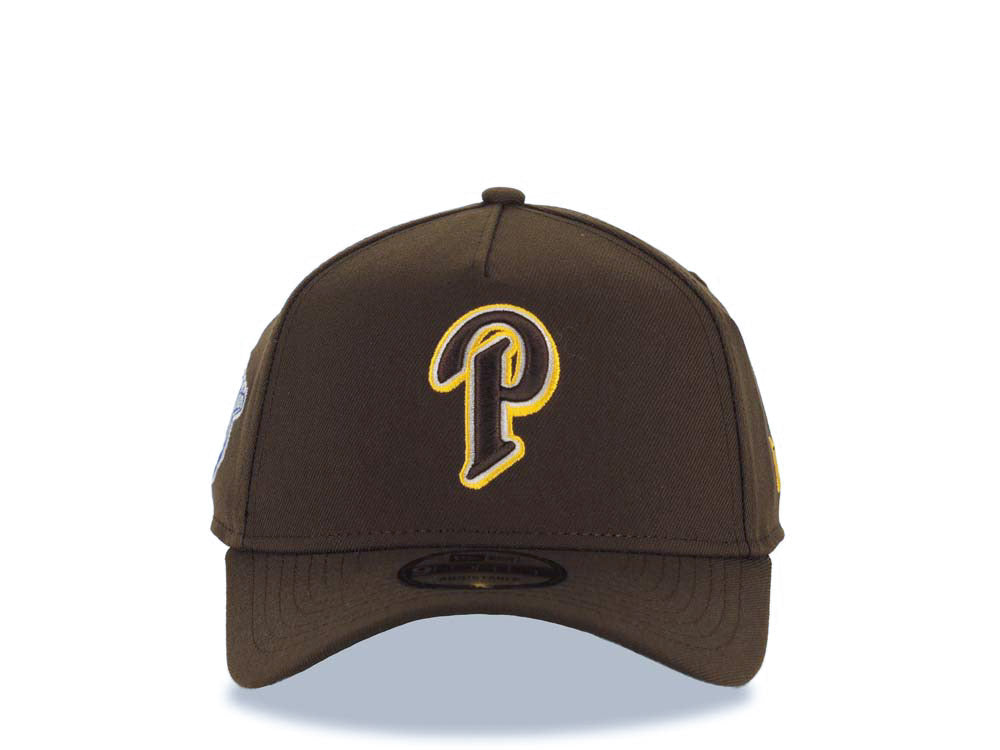 San Diego Padres New Era MLB 9FORTY 940 Adjustable A-Frame Cap Hat Brown Crown/Visor Brown/White/Yellow P Logo 1998 World Series Side Patch