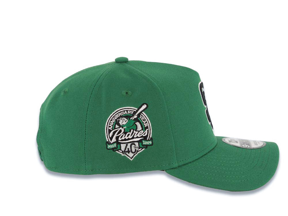 San Diego Padres New Era MLB 9FORTY 940 Adjustable A-Frame Cap Hat Green Crown/Visor Black/White Logo 40th Anniversary Side Patch