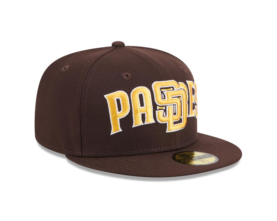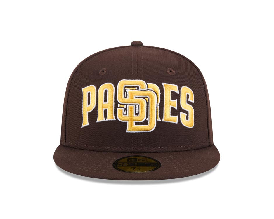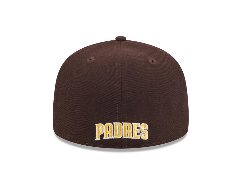 San Diego Padres New Era MLB 59FIFTY 5950 Fitted Cap Hat Brown Crown/Visor Yellow/White Overlap Logo