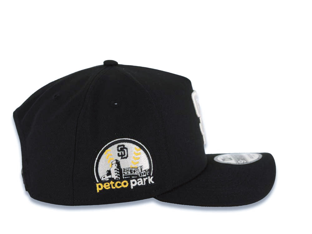 San Diego Padres New Era MLB 9FORTY 940 Adjustable A-Frame Cap Hat Black Crown/Visor White Logo With Yellow Rose 10th Anniversary Petcopark Side Patch