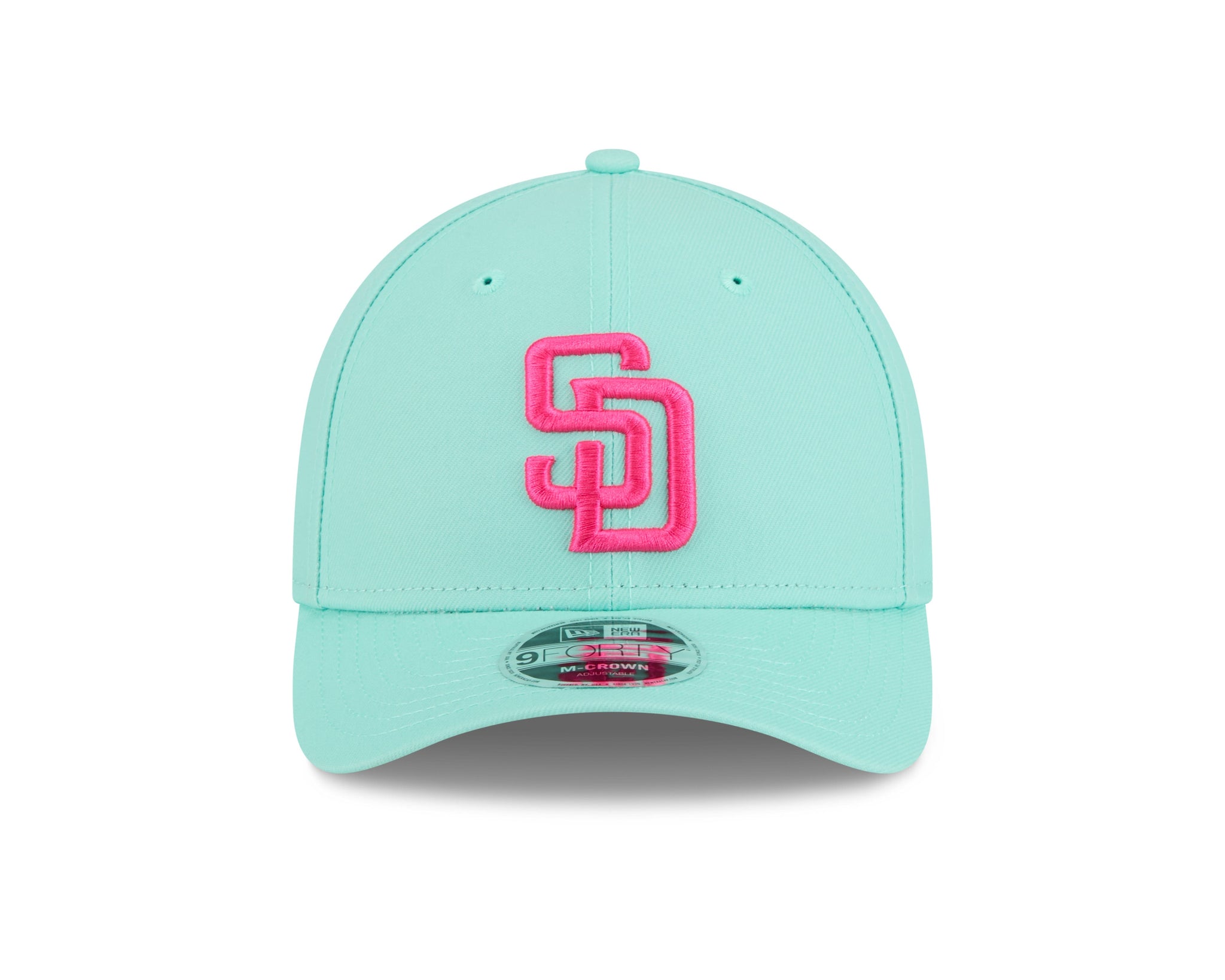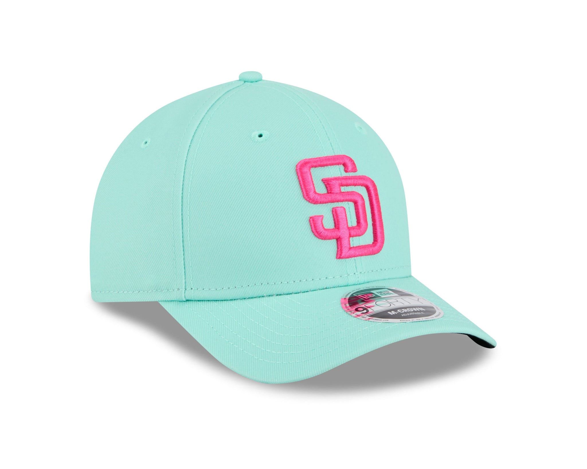(City Connect) San Diego Padres New Era MLB 9FORTY 940 Adjustable M-Crown Cap Hat Teal Crown/Visor Magenta Logo
