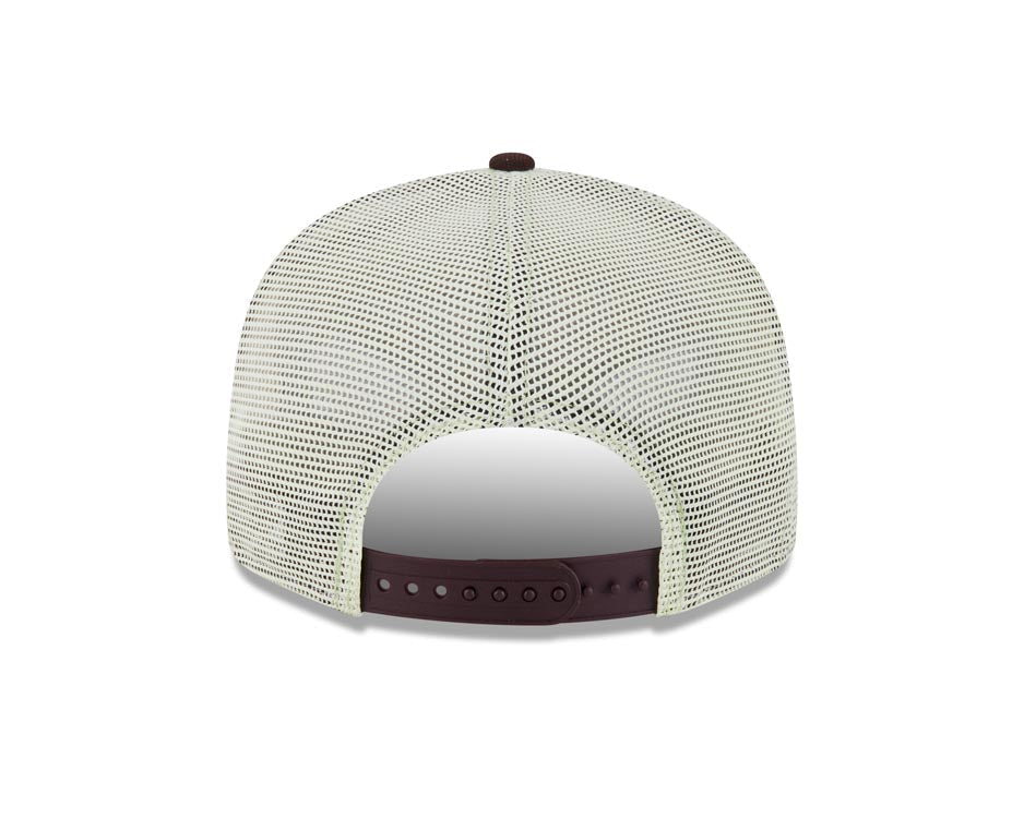 San Diego Padres New Era MLB 9FIFTY 950 Snapback Trucker/Mesh Cap Hat Brown Crown/Visor Pink/Blue/Yellow Script/Text Logo