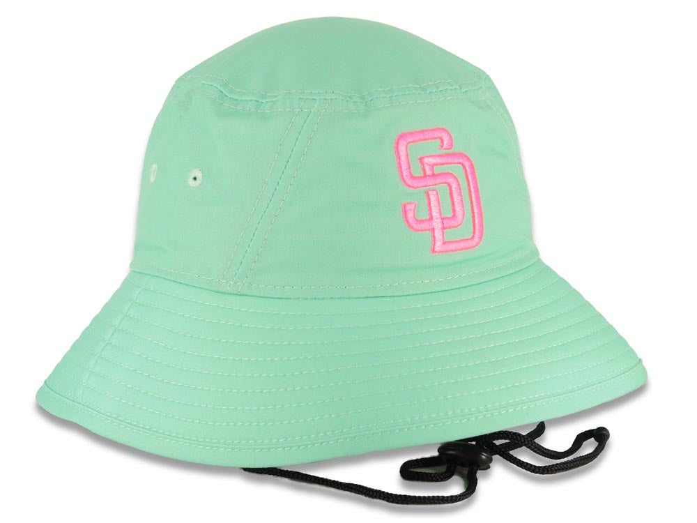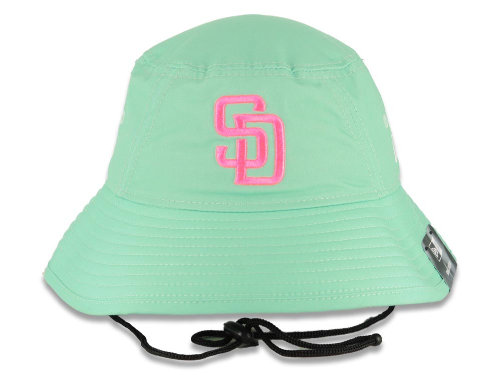 (City Connect) San Diego Padres New Era MLB Bucket Cap Hat Teal Crown/Visor Magenta Logo