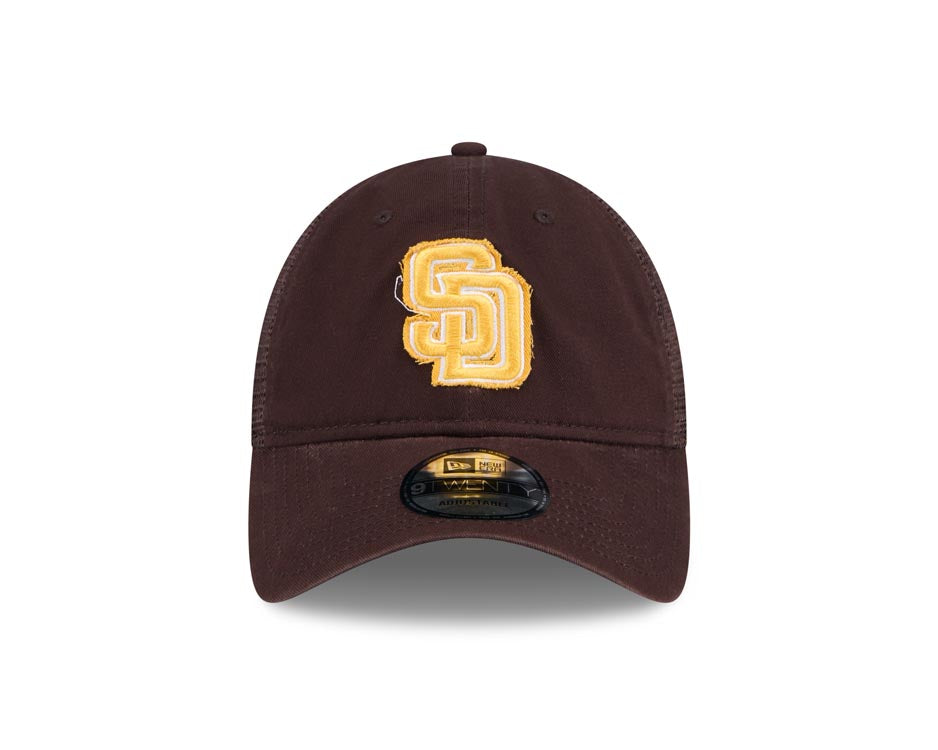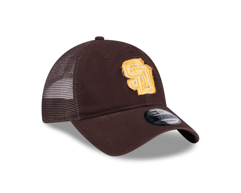 San Diego Padres New Era MLB 9TWENTY 920 Adjustable Trucker/Mesh Cap Hat Brown Crown/Visor Yellow Logo Script