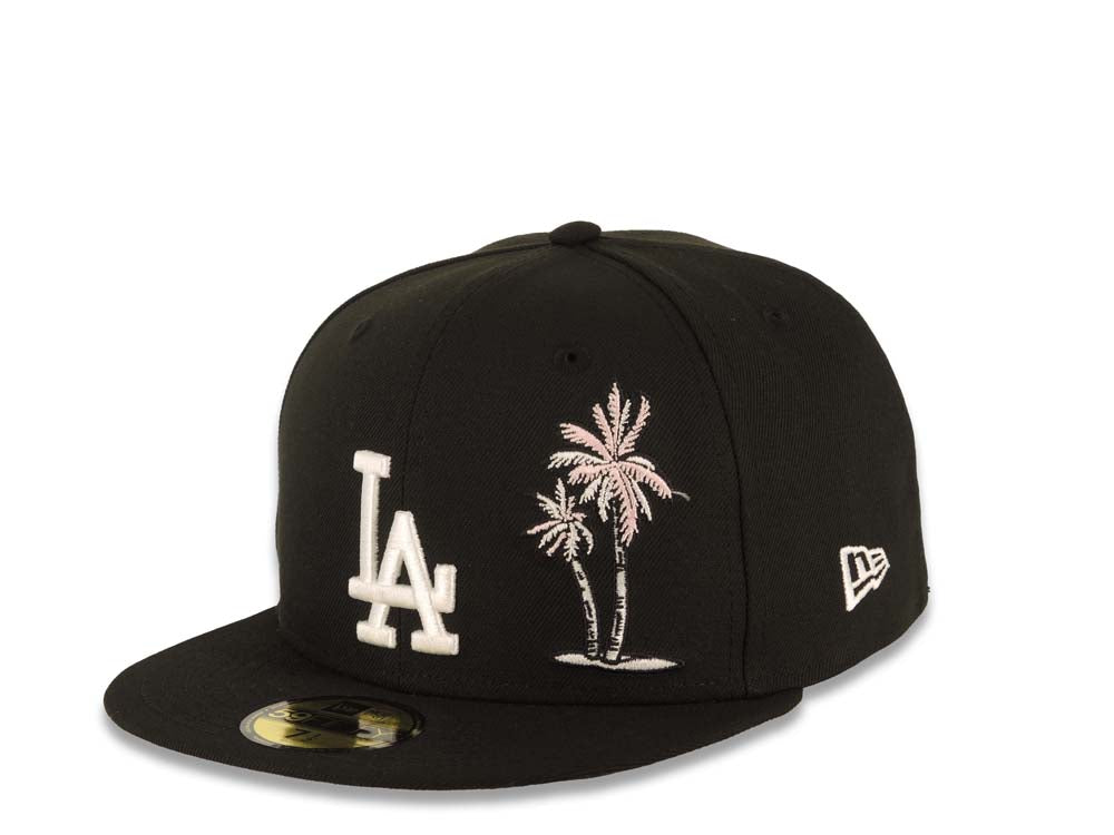 Los Angeles Dodgers New Era MLB 59FIFTY 5950 Fitted Cap Hat Black Crown/Visor White Logo With Pink Palm 50th Anniversary Side Patch Gray UV
