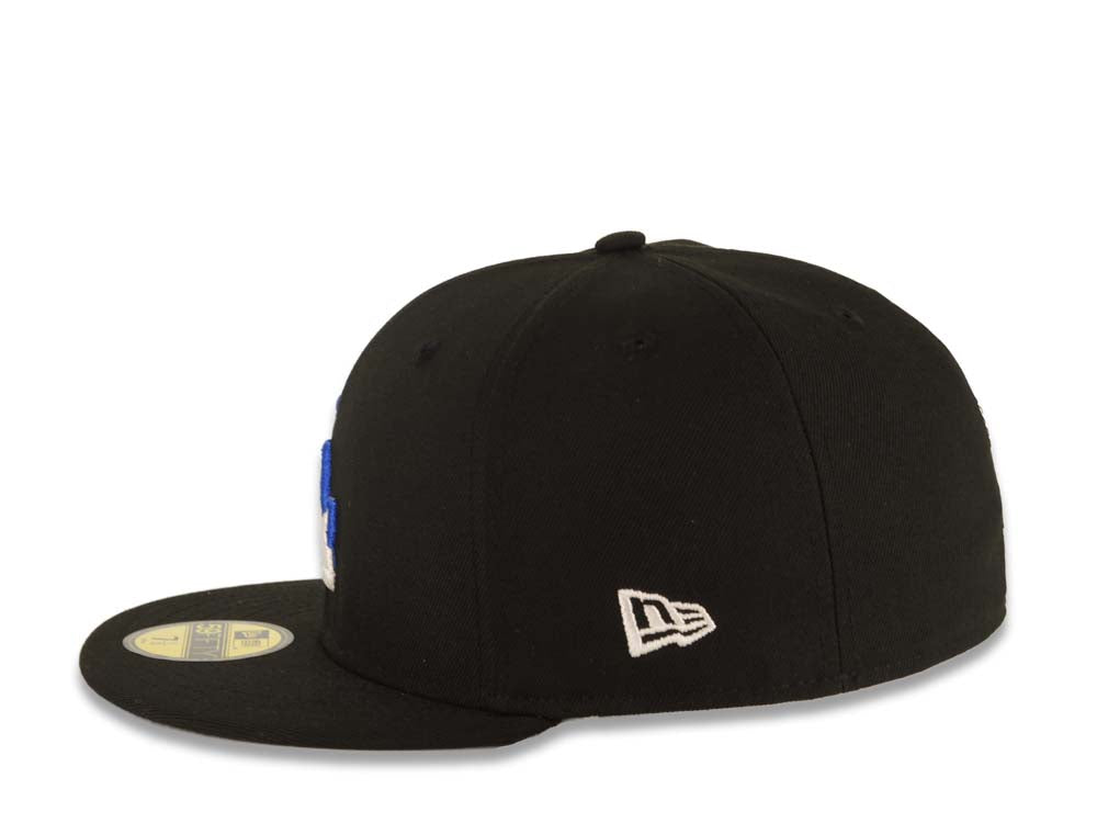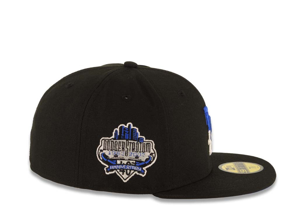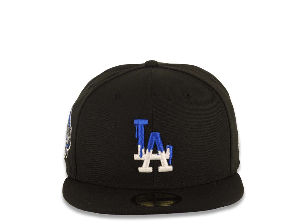 Los Angeles Dodgers New Era MLB 59FIFTY 5950 Fitted Cap Hat Black Crown/Visor White/Royal Blue Drip Logo 40th Anniversary Stadium Side Patch