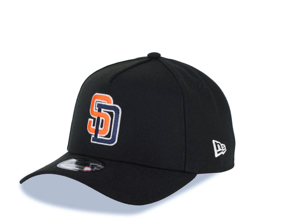 San Diego Padres New Era MLB 9FORTY 940 Adjustable A-Frame Cap Hat Black Crown/Visor Orange/Navy Flat Stitch Logo Batterman Batty Side Patch