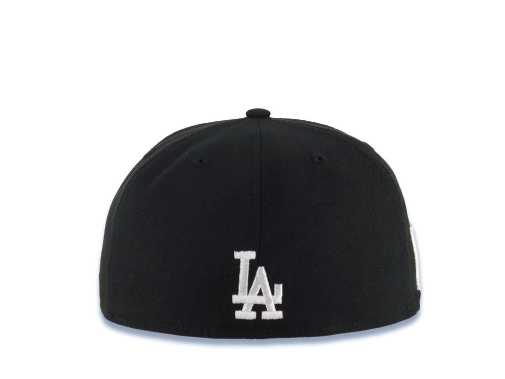 • Load image into Gallery viewer, Los Angeles Dodgers New Era MLB 59FIFTY 5950 Fitted Cap Hat Black Crown/Visor White Logo With Flower Bloom Across Japan Flag Side Patch Gray UV