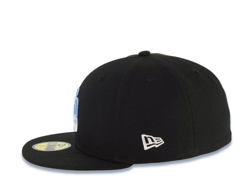 San Diego Padres New Era MLB 59FIFTY 5950 Fitted Cap Hat Black Crown/Visor White/Sky Blue Logo 20th Anniversary Petcopark Side Patch Gray UV