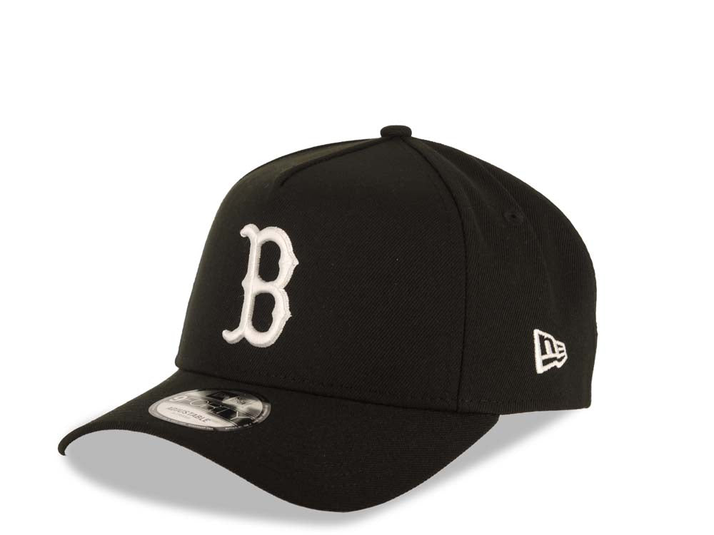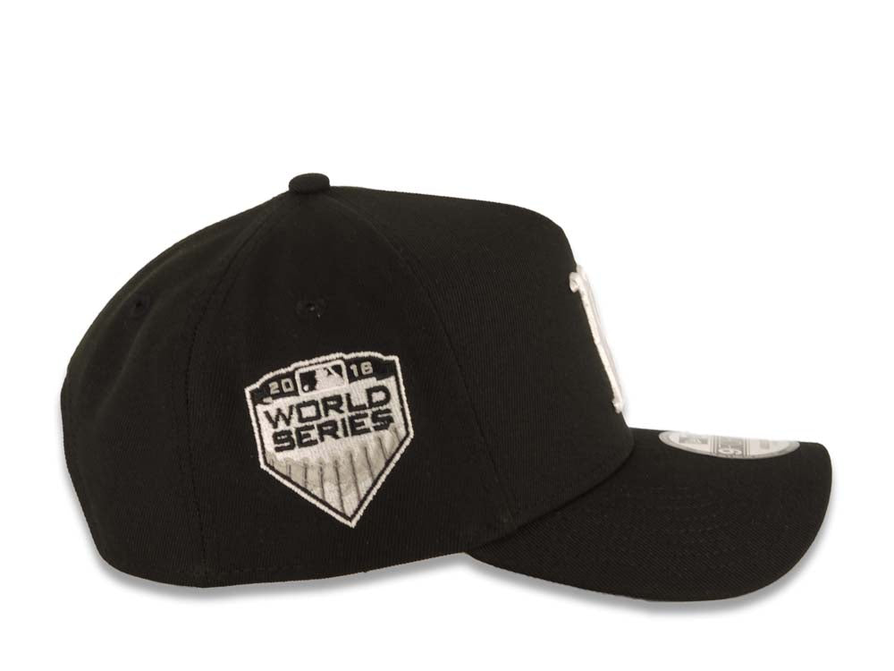 Boston Red Sox New Era MLB 9FORTY 940 Adjustable A-Frame Cap Hat Black Crown/Visor White Logo 2018 World Series Side Patch Gray UV