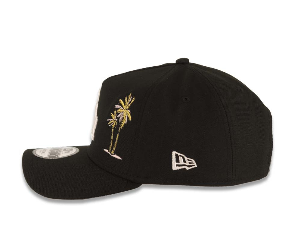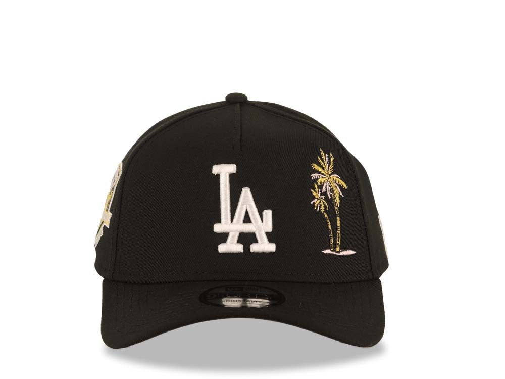 Los Angeles Dodgers New Era MLB 9FORTY 940 Adjustable A-Frame Cap Hat Black Crown/Visor White Logo With Palm Trees 50th Anniversary Side Patch