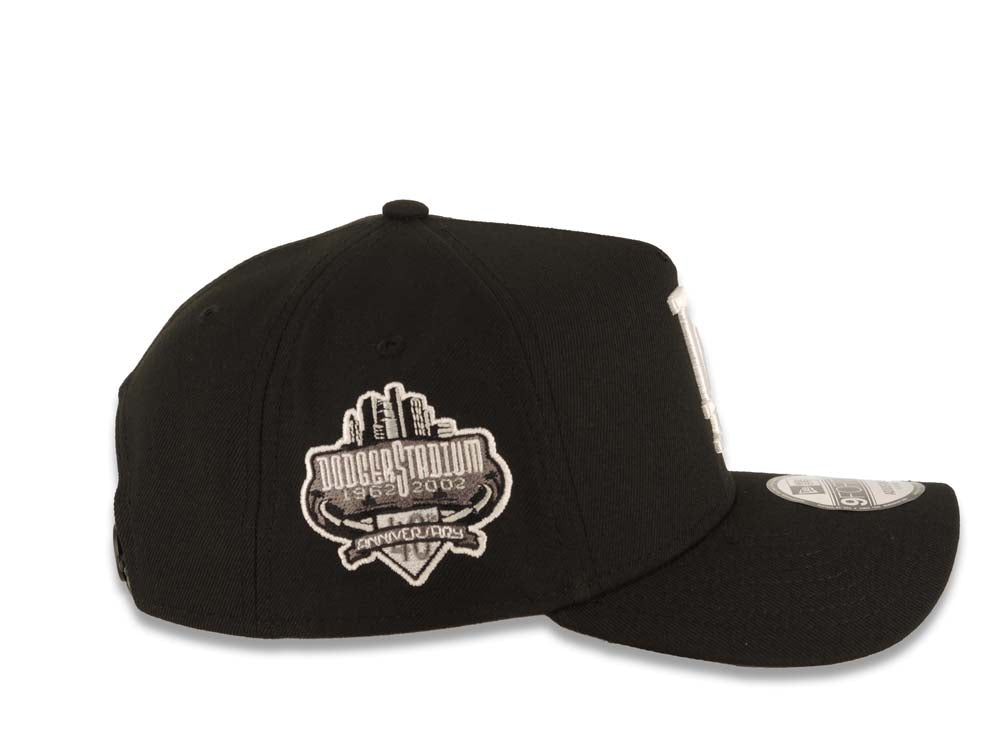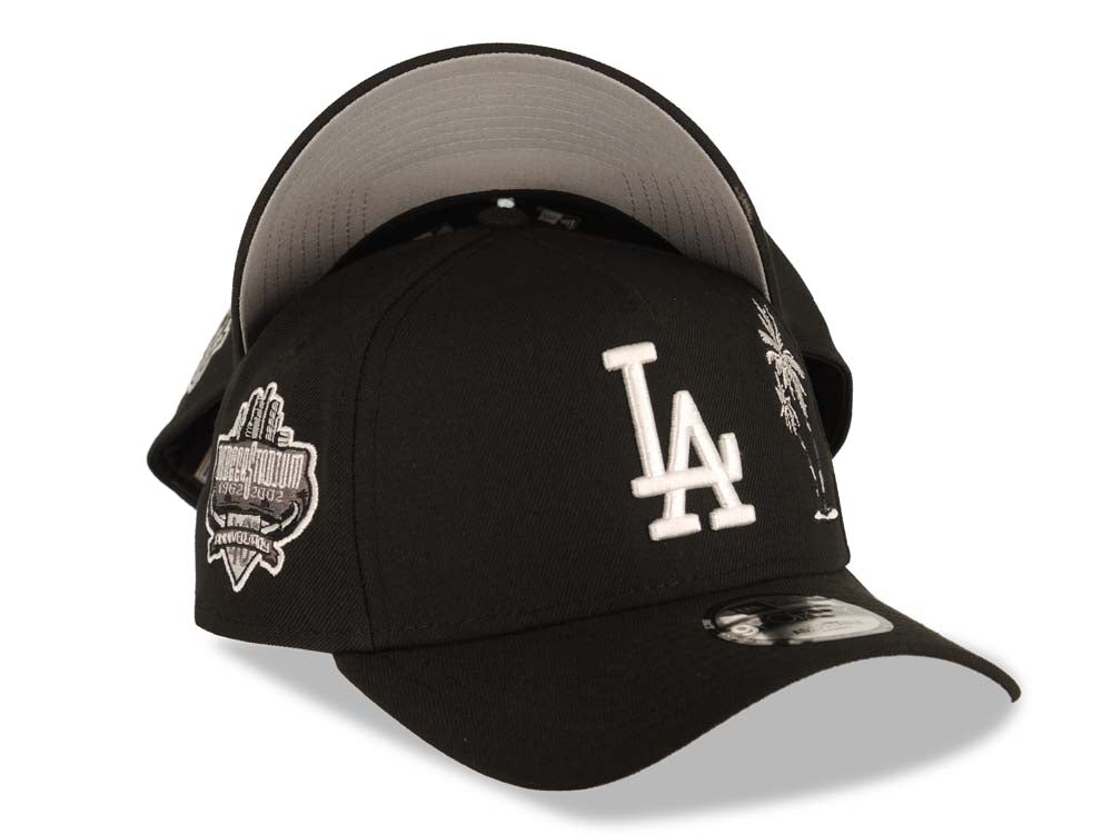 Los Angeles Dodgers New Era MLB 9FORTY 940 Adjustable A-Frame Cap Hat Black Crown/Visor White Logo With Palm Trees 40th Anniversary Stadium Side Patch
