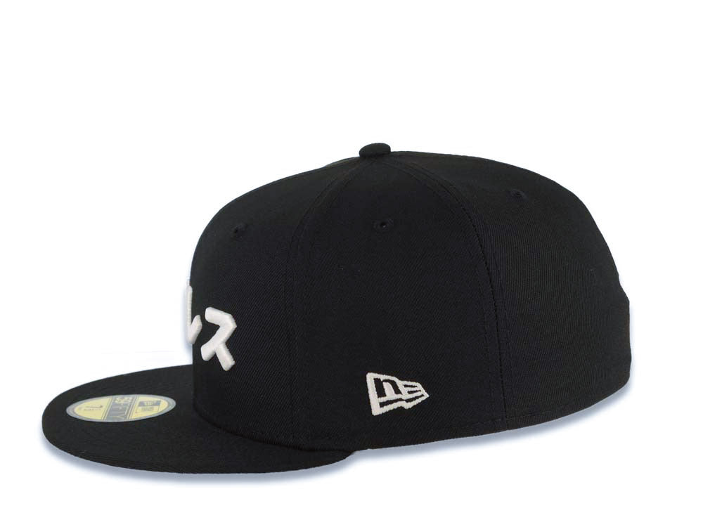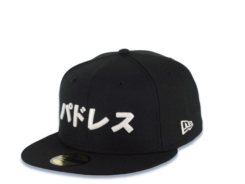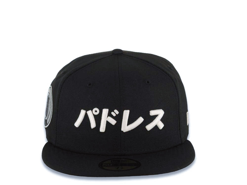 San Diego Padres New Era MLB 59FIFTY 5950 Fitted Cap Hat Black Crown/Visor White Japan Script Logo Darvish 11 Side Patch Gray UV