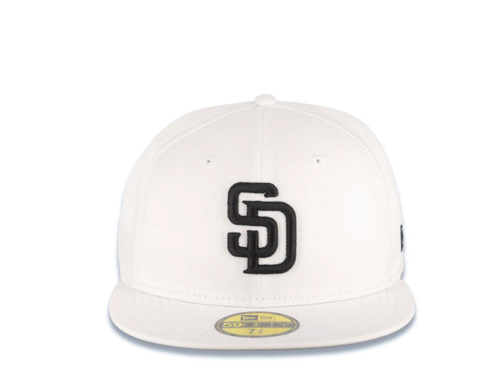 San Diego Padres New Era MLB 59FIFTY 5950 Fitted Cap Hat White Crown/Visor Black Logo Gray UV