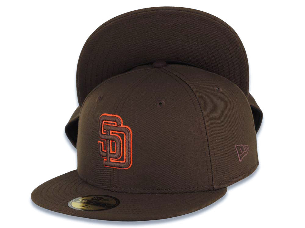 San Diego Padres New Era MLB 59FIFTY 5950 Fitted Cap Hat Brown Crown/Visor Brown/Orange Logo Brown UV