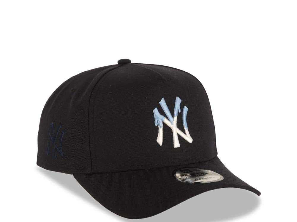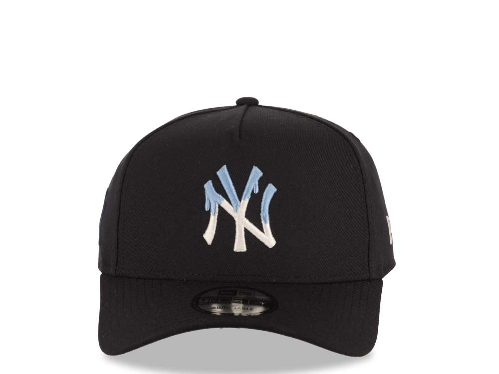New York Yankees New Era MLB 9FORTY 940 Adjustable A-Frame Cap Hat Navy Blue Crown/Visor White/Sky Blue Drip Logo Sky Blue UV