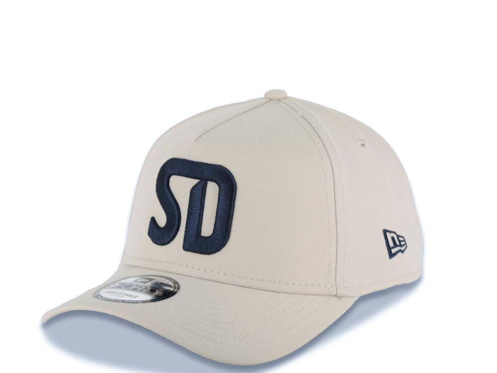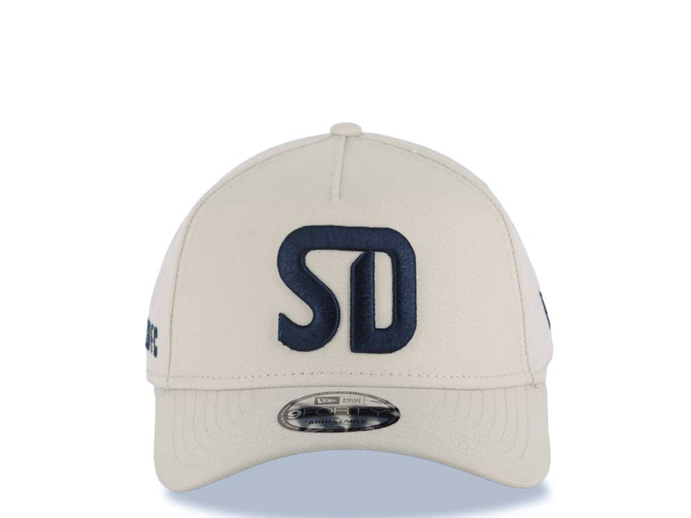 San Diego FC New Era MLS 9FORTY 940 Adjustable A-Frame Cap Hat Stone Crown/Visor Navy Blue Logo Navy Blue UV