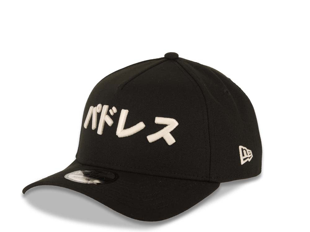 San Diego Padres New Era MLB 9FORTY 940 Adjustable A-Frame Cap Hat Black Crown/Visor White Japan Script/Text Logo 1 Mitsui Side Patch Gray UV