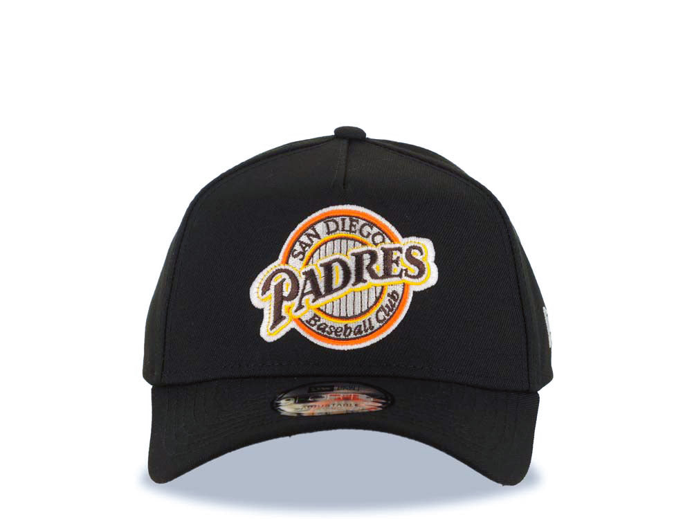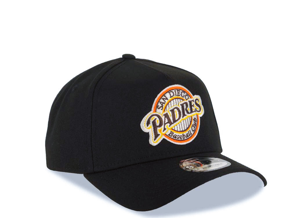 San Diego Padres New Era MLB 9FORTY 940 Adjustable A-Frame Cap Hat Black Crown/Visor Brown/Yellow Baseball Club Logo Gray UV