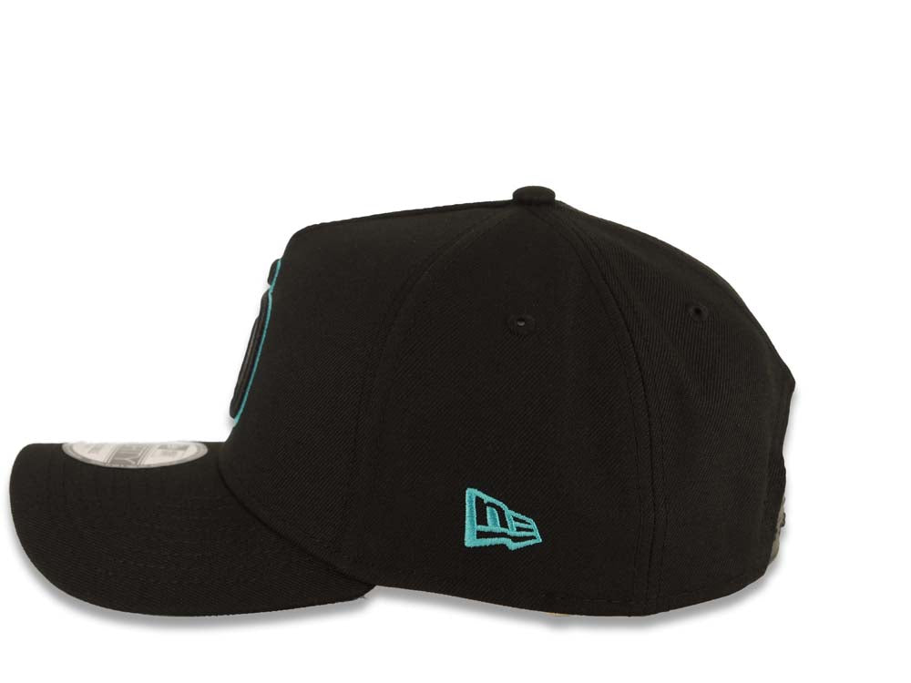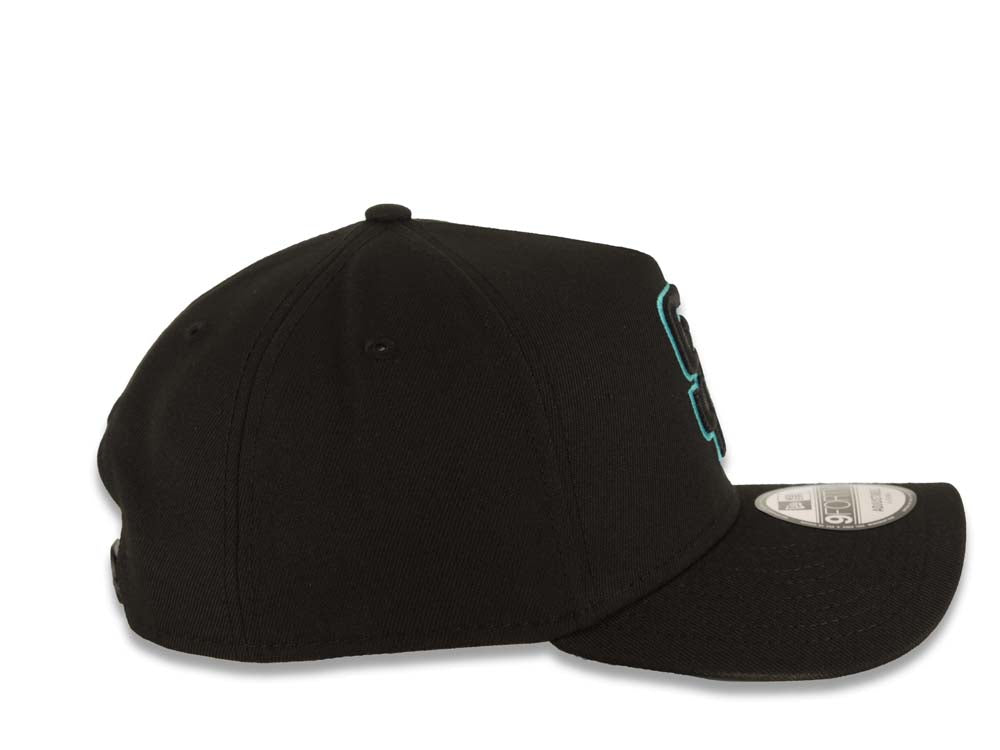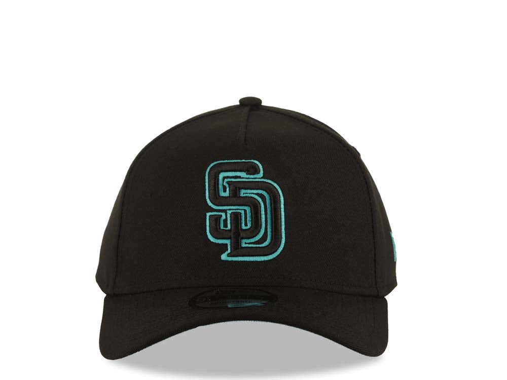 San Diego Padres New Era 9FORTY 940 Adjustable A-Frame Cap Hat Black Crown/Visor Black/Teal Logo