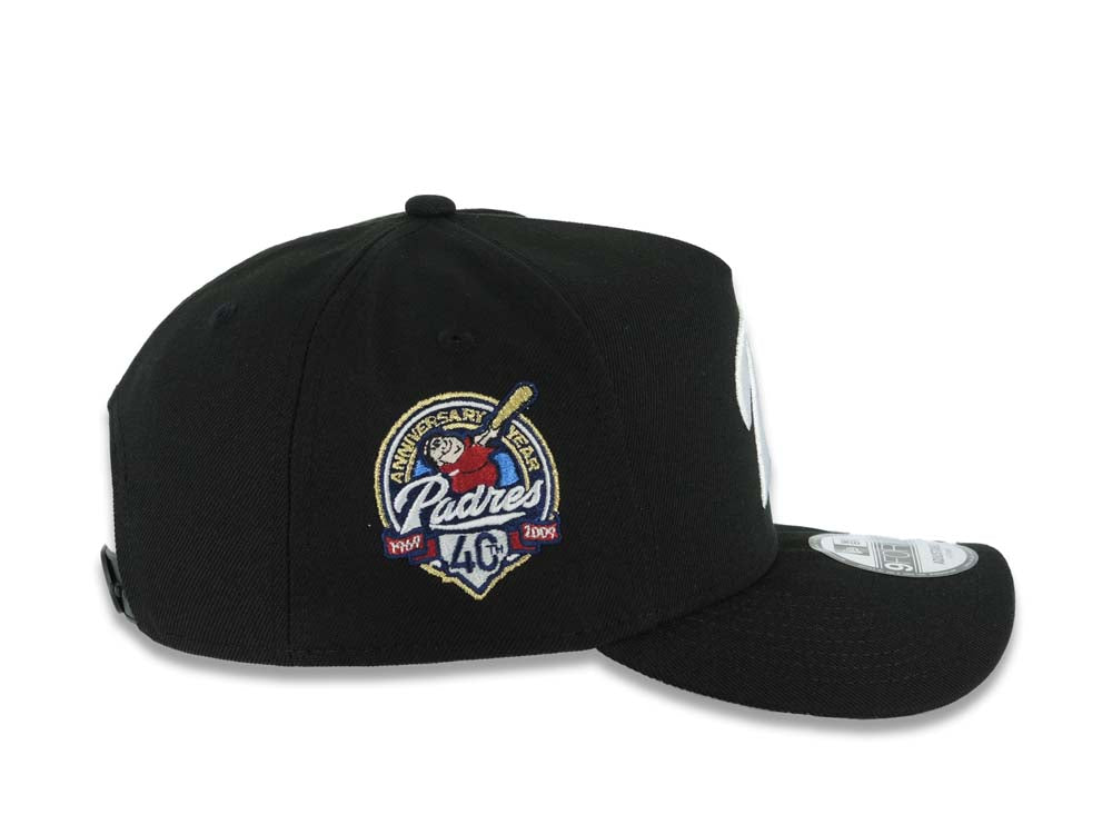 San Diego Padres New Era MLB 9FORTY 940 Adjustable A-Frame Cap Hat Black Crown/Visor White P Script Logo 40th Anniversary Side Patch Gray UV