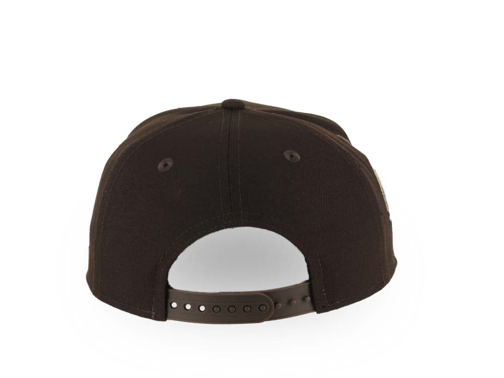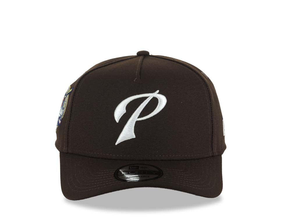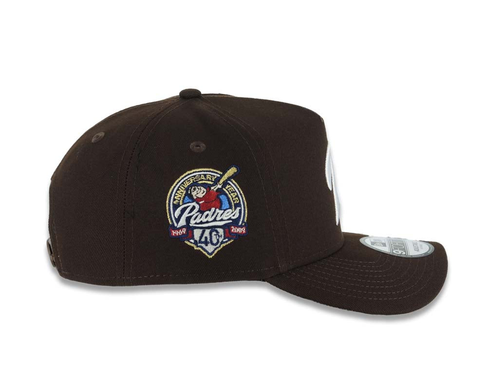 San Diego Padres New Era MLB 9FORTY 940 Adjustable A-Frame Cap Hat Dark Brown Crown/Visor White Script P Logo 40th Anniversary Side Patch Gray UV