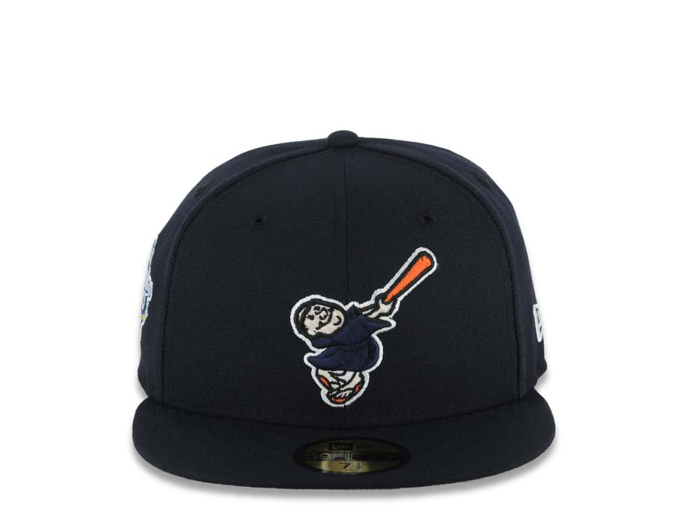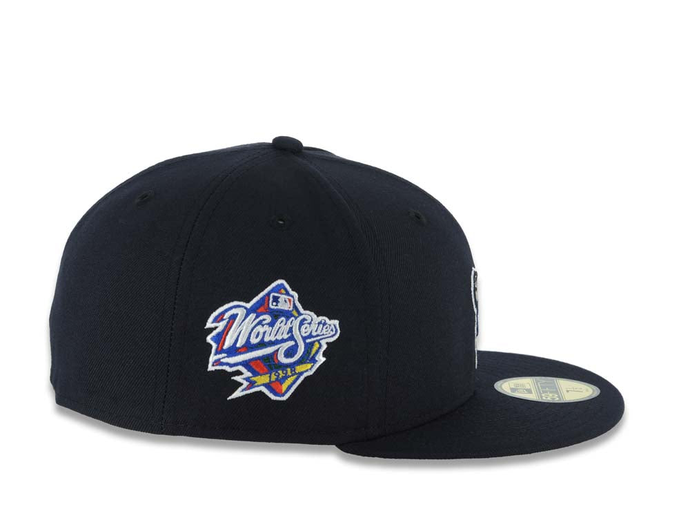 San Diego Padres New Era MLB 59FIFTY 5950 Fitted Cap Hat Navy Blue Crown/Visor Navy Blue/Orange Swinging Friar Logo 1998 World Series Side Patch Gray UV