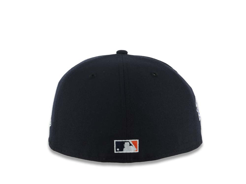 • Load image into Gallery viewer, San Diego Padres New Era MLB 59FIFTY 5950 Fitted Cap Hat Navy Blue Crown/Visor Navy Blue/Orange Swinging Friar Logo 1998 World Series Side Patch Gray UV