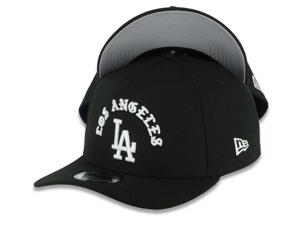 Los Angeles Dodgers New Era MLB 9FORTY 940 Adjustable A-Frame Cap Hat Black Crown/Visor White Logo With Text/Script Gray UV